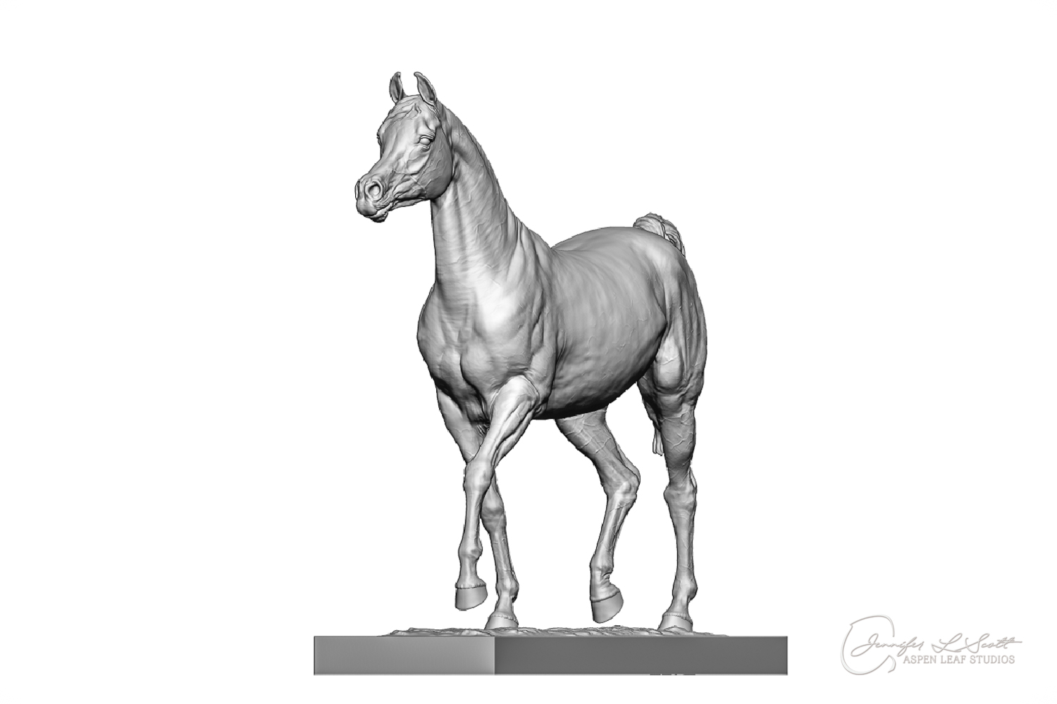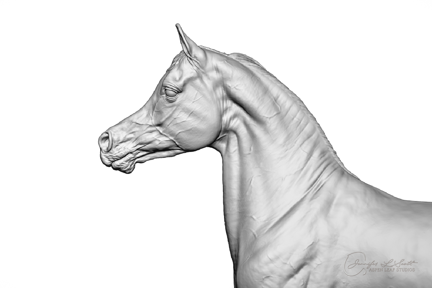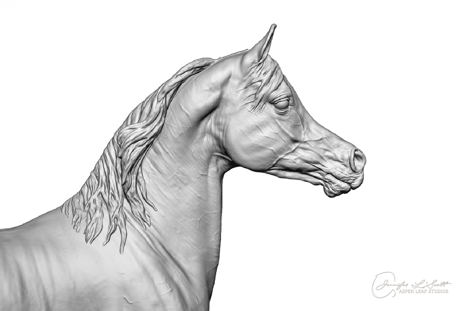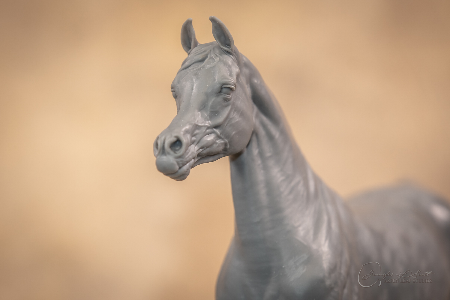 Talib (pronounced Tah-LEEB) is a plucky little (14 something hands high) representation of the Arabian. This sweet gelding is half-heartedly jigging /stepping towards something that's caught his attention. Perhaps his human has come to visit with treats? Because hims cute after all, and while clearly of good breeding this one is very much a pet. The most fun part of sculpting this piece was getting all that bendy Arabian movement. The nuances of gravity and weight shifts as he bends right, falling onto that inside shoulder. The step and support of the raised hip under his left hind and the drop of the opposite hip. The snakey-neck thing Arabians do. All of those shapes and details bring realism to this piece in ways that just sculpting pretty pieces can't. Then you add on that yummy texture and he's something that breathes. I'm so pleased with how he turned out.