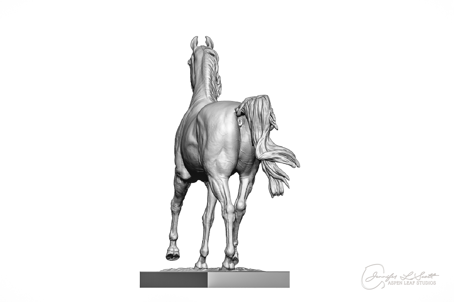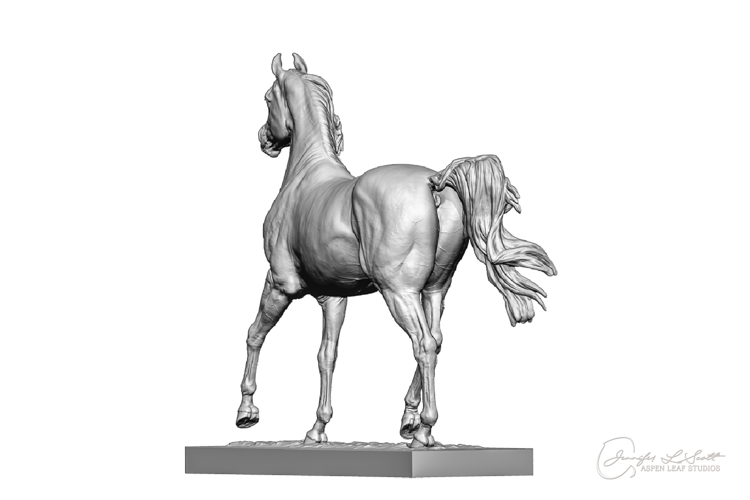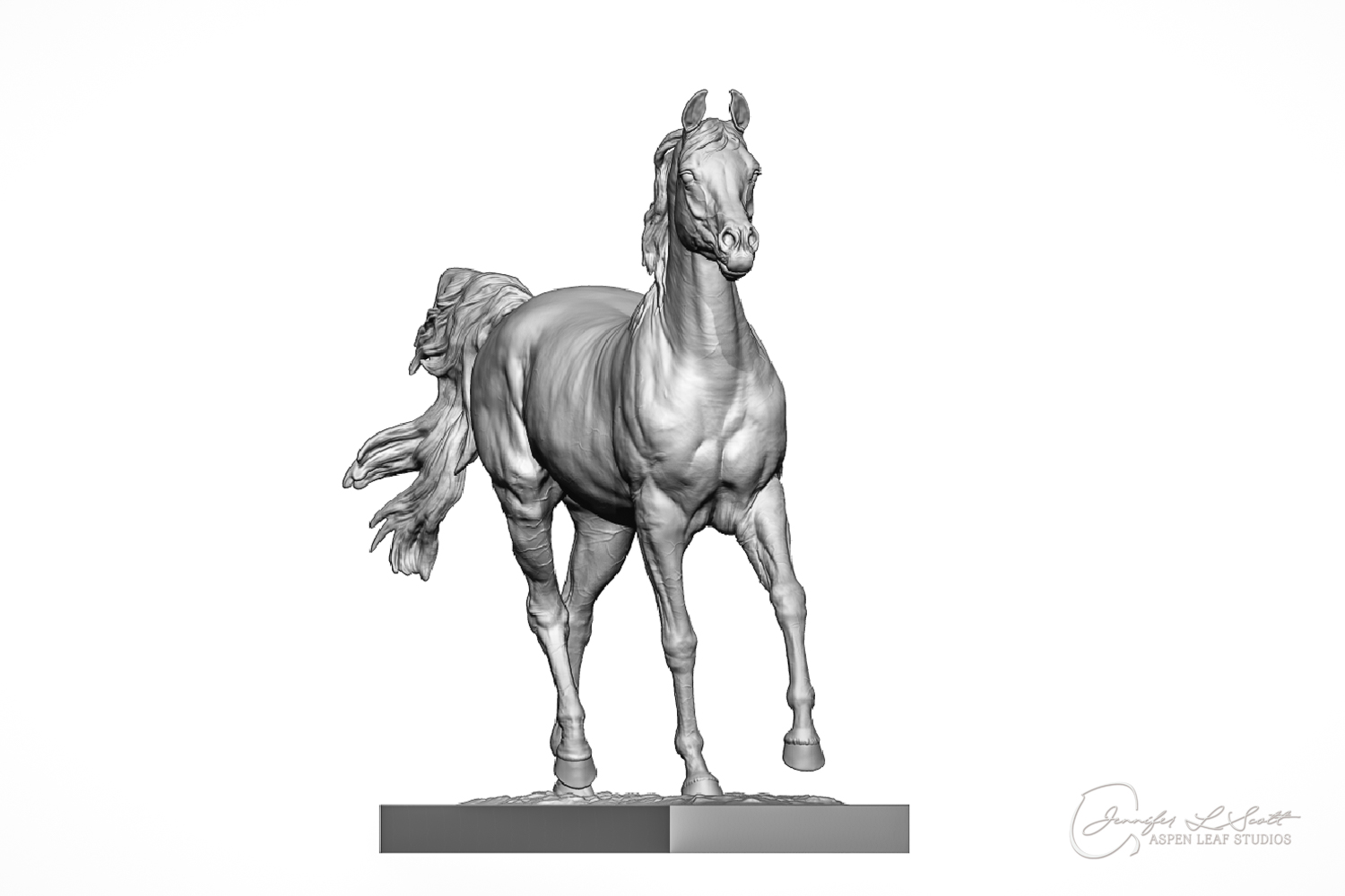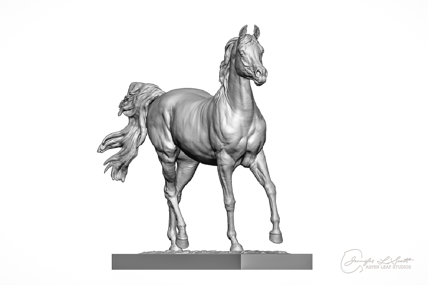 Talib (pronounced Tah-LEEB) is a plucky little (14 something hands high) representation of the Arabian. This sweet gelding is half-heartedly jigging /stepping towards something that's caught his attention. Perhaps his human has come to visit with treats? Because hims cute after all, and while clearly of good breeding this one is very much a pet. The most fun part of sculpting this piece was getting all that bendy Arabian movement. The nuances of gravity and weight shifts as he bends right, falling onto that inside shoulder. The step and support of the raised hip under his left hind and the drop of the opposite hip. The snakey-neck thing Arabians do. All of those shapes and details bring realism to this piece in ways that just sculpting pretty pieces can't. Then you add on that yummy texture and he's something that breathes. I'm so pleased with how he turned out.